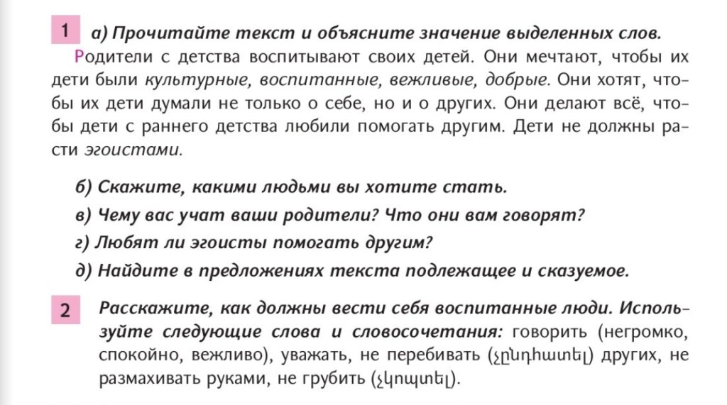 д) Подлежащее: Родители, они (3), дети. Сказуемое: Воспитывают, мечтают, хотят, делают, не должны.